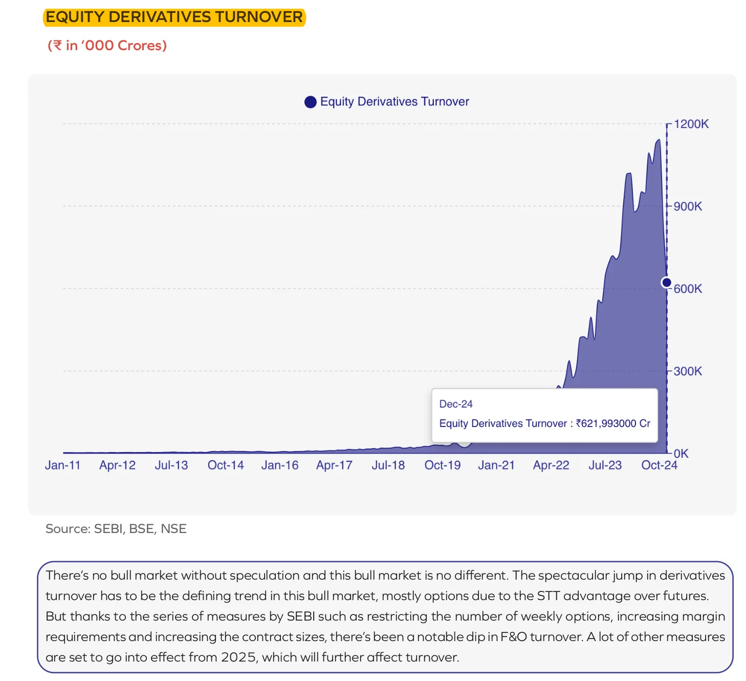 Given the speculative fervor and losses among retail investors, SEBI became concerned and implemented a series of measures in the last couple of years to make trading F&O unattractive. In a sense they worked, and F&O volumes are down significantly.