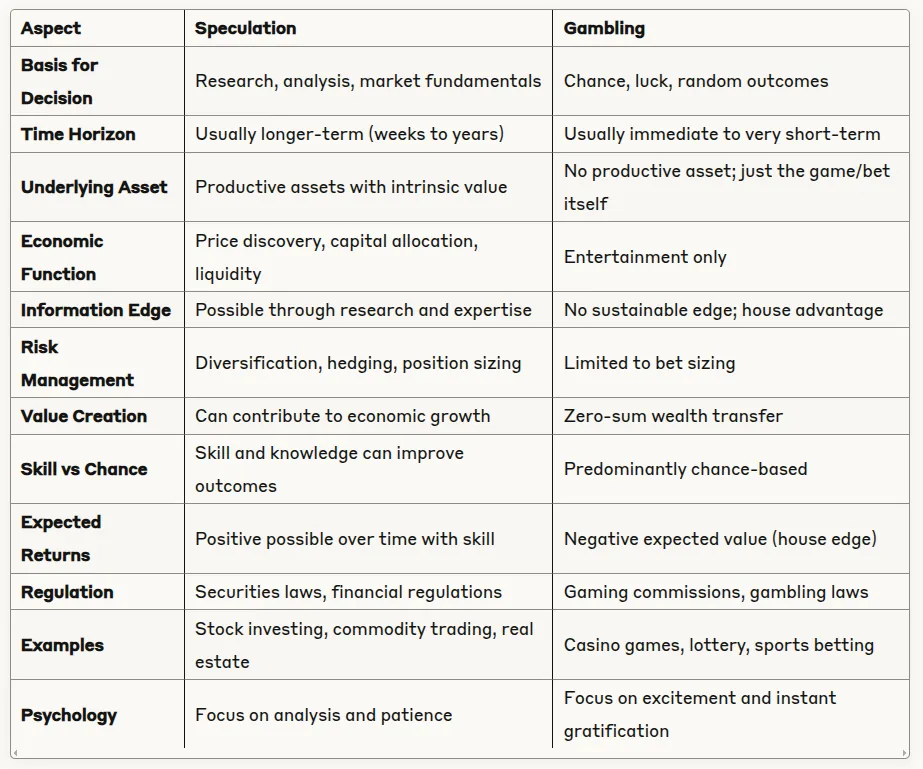Ultimately though, there’s a large degree of chance and luck involved in anything where the future has a role to play, as is the case with both speculation and gambling. Everything from your career, marriage, or taking a flight has both characteristics.