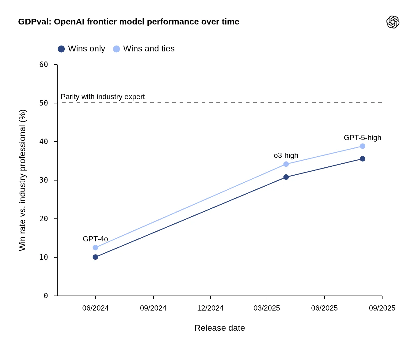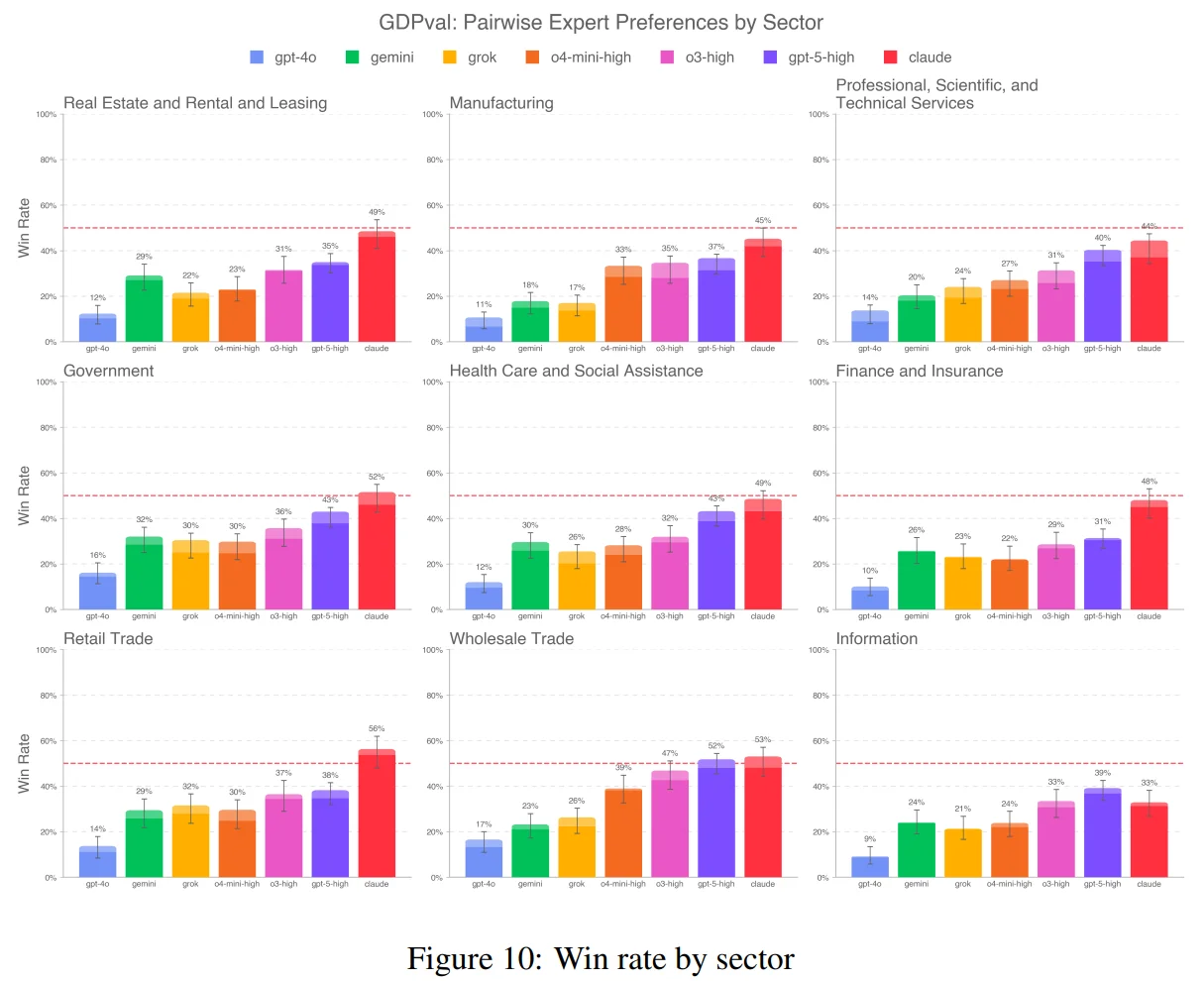 The results are either sobering or exciting depending on whether you are an AI boomer or doomer. Frontier models are approaching industry-expert quality in terms of the work output quality.