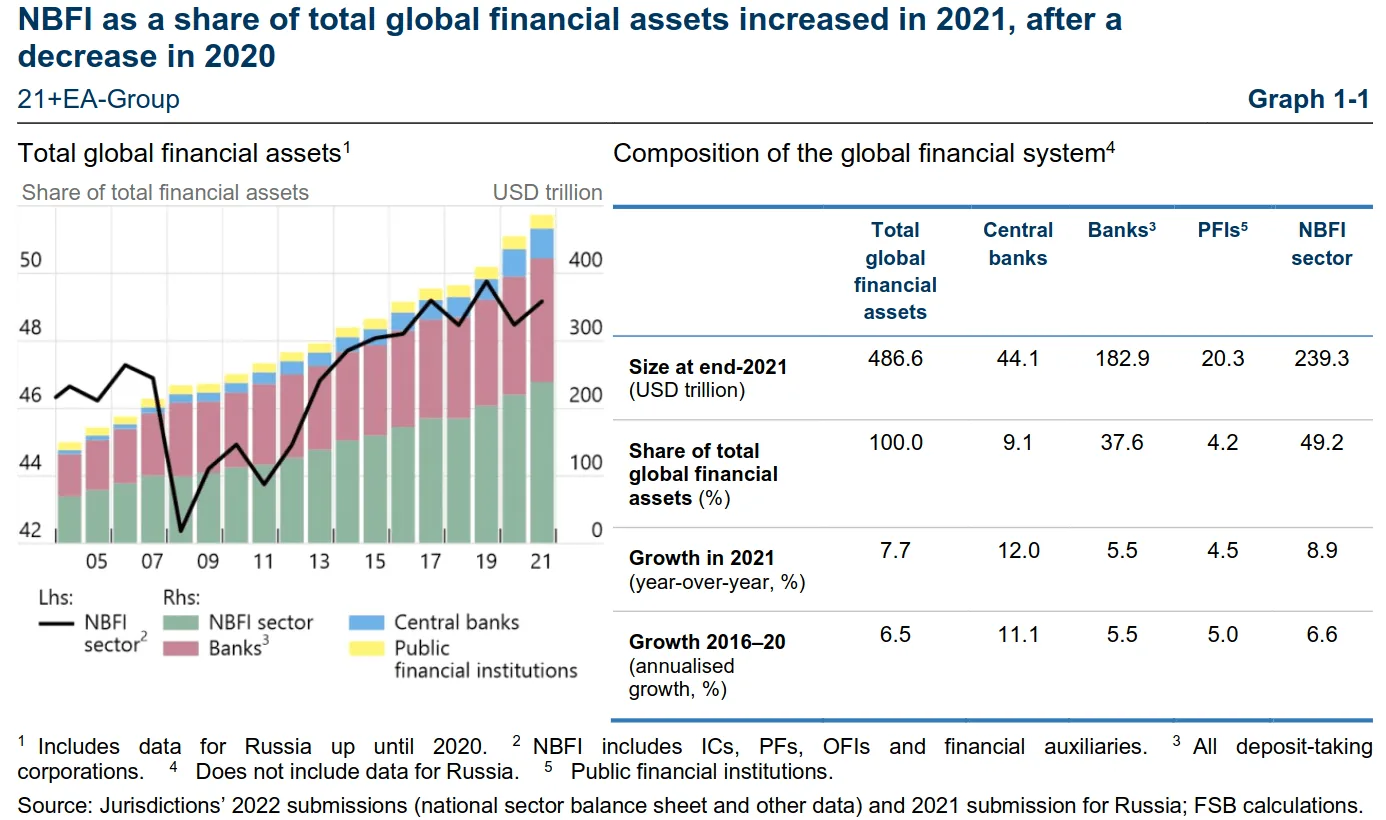 Non-bank entities today perform many of the same activities as banks, but there’s more to that story. There isn’t a clear separation between banks and non-bank entities because banks have direct and indirect linkages to non-bank entities. Banks tend to have other non-bank business lines like asset management, broking, and market making. Jumping to the conclusion that non-banks or shadow banking entities are eating the lunch of banks is tricky.