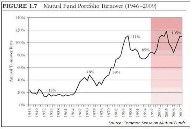 Then there’s career risk. Take fund management for example. The turnover rate of mutual funds across the much of the world has been going up. Take a look at this chart, this is for US funds, but it’s the same in India as well. A turnover rate of 100% means that the fund manager is changing the portfolio every year.