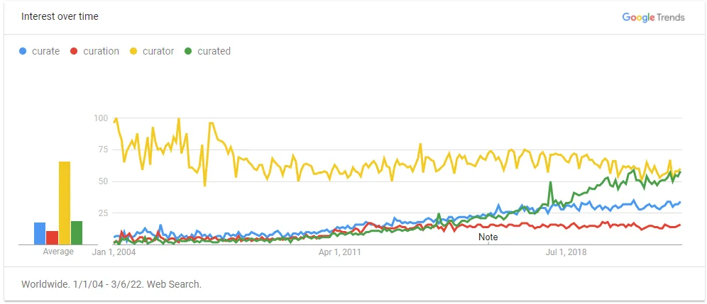 This leads to the debate over the use of the term curation and internet pissing contests over its appropriation. The term comes from the Latin word cūrāre, which means to look after or take care of. The term was originally used in the art and museum worlds but not that everybody is a curator, the art people are horrified.
