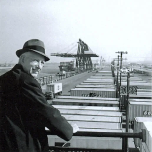 I had driven my trailer truck up from Fayetteville … with a load of cotton bales that were to go on an American Export ship tied up at the dock. For some reason or another, I had to wait most of the day to deliver the bales, and as I sat there, I watched all those people muscling each crate and bundle off the trucks and into the slings that would lift them into the hold of the ship. On board the ship, every sling would have to be unloaded by the stevedores and its contents put in the proper place in the hold. What a waste in time and money! Suddenly, the thought occurred to me: Wouldn’t it be great if my trailer could simply be lifted up and placed on the ship without its contents being touched?’