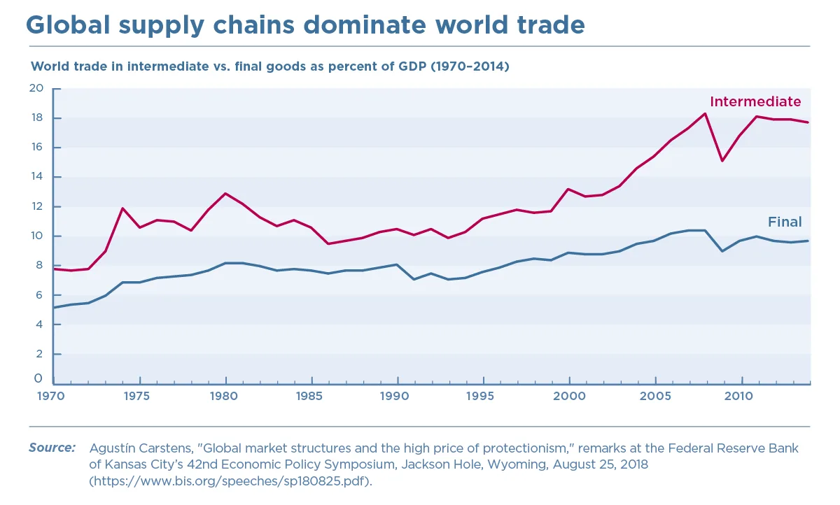 Similarly, communication technologies enabled the real-time coordination of global supply chains.
