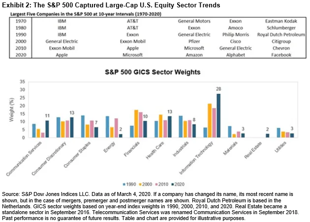 The growth of big tech companies has been phenomenal. Here’s a look at the historical sector composition of the S&P 500. The way they’ve replaced the old economy and staid old names is remarkable.