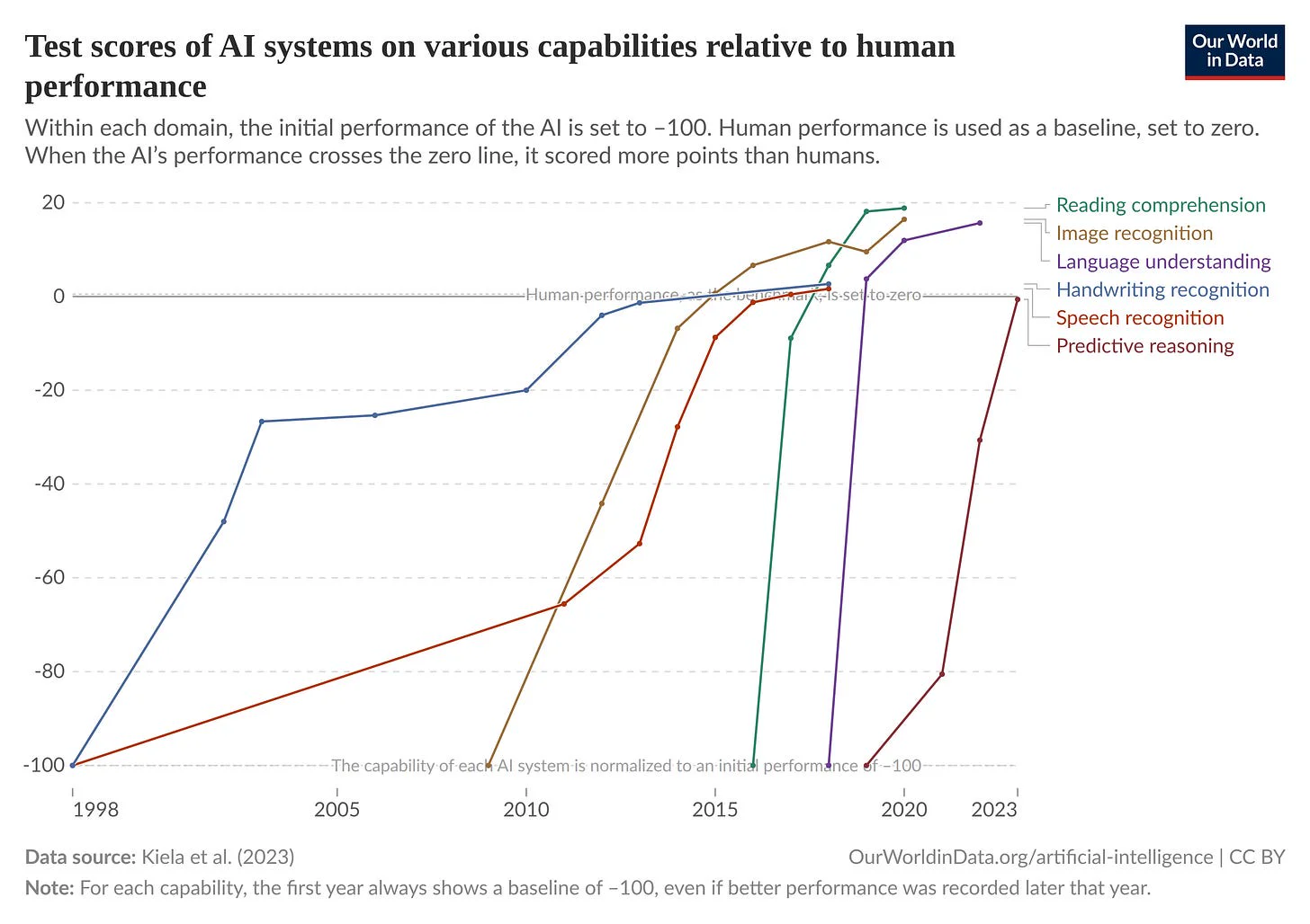 As artificial intelligence continues to get better, the gap between man and machine has narrowed. In numerous domains, AI have either caught up to human capabilities or bettered them. You might ask me what’s my evidence for making such grandiose claims. Here are some charts: