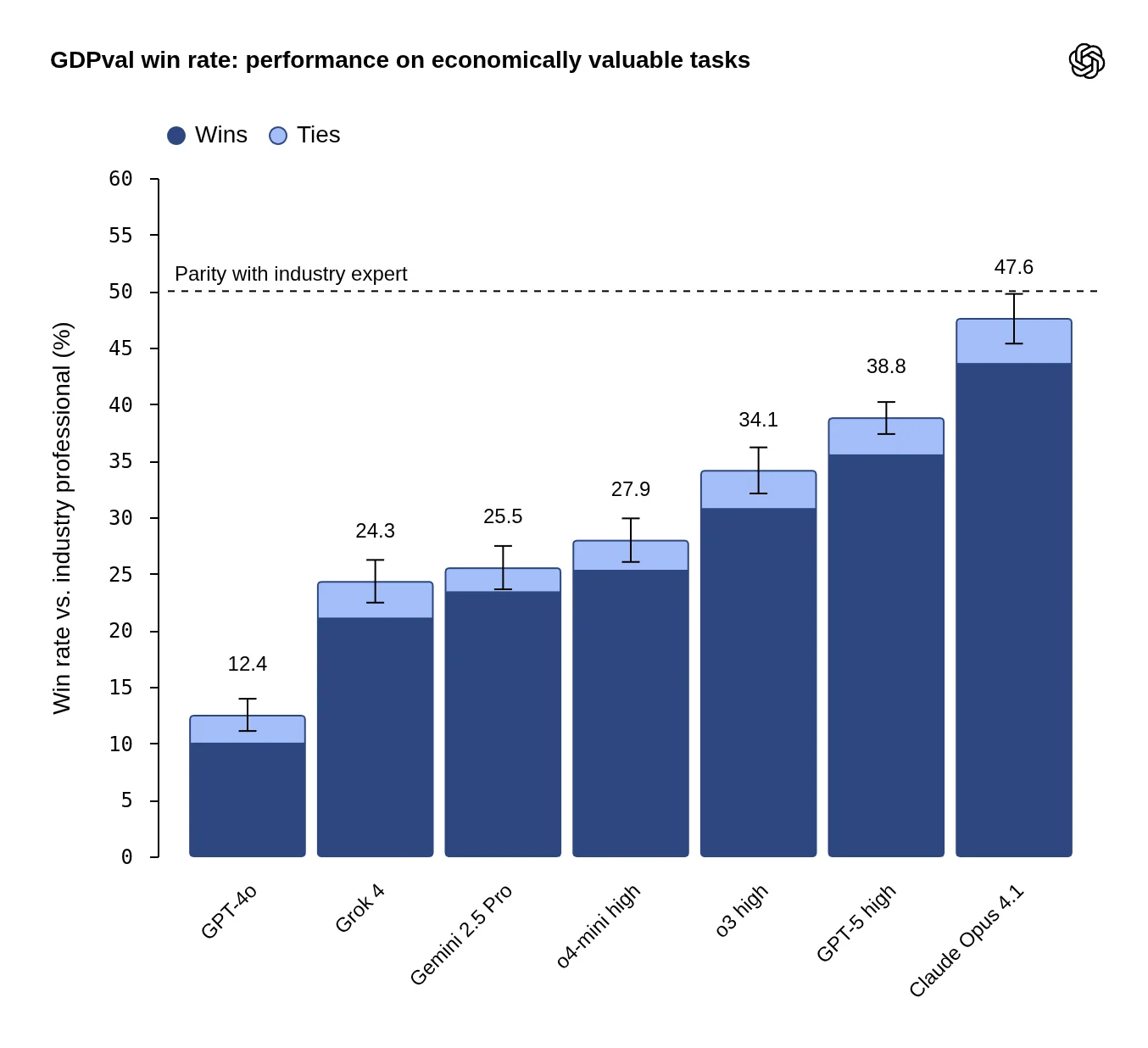 The results are either sobering or exciting depending on whether you are an AI boomer or doomer. Frontier models are approaching industry-expert quality in terms of the work output quality.